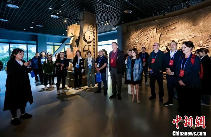 12月6日,2024年海上丝绸之路国际文化旅游节暨福州国际友城文化周在福州启动,来自9个国家9个国际友城、意向城市和友好交流城市的22位嘉宾齐聚榕城,参加友城茶话会、福州“非遗”体验、“国际友城市长闽都行”等系列活动。图为嘉宾参观位于福州马尾的中国船政文化博物馆。中新社记者 王东明 摄