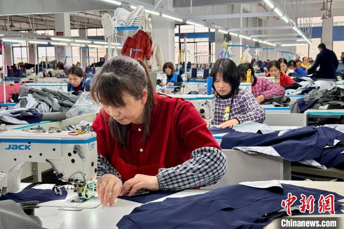 12月6日,工人在生产冲锋衣。中新社记者 钱晨菲 摄