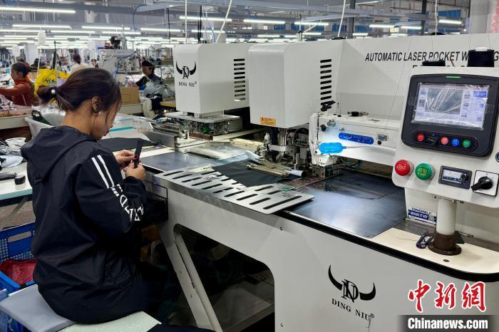 12月6日,工人在检查冲锋衣口袋细节。中新社记者 钱晨菲 摄