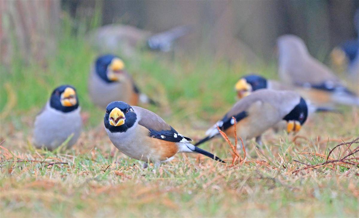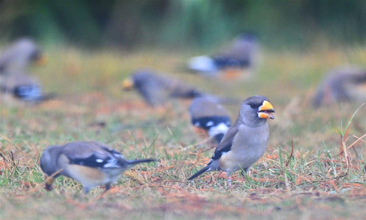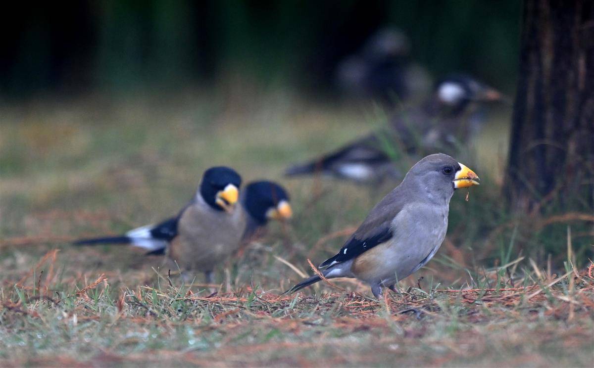 12月5日,枝江金湖国家湿地公园内,一群群黑头蜡嘴雀正在湖边树丛中觅食。现在,正是黑头蜡嘴雀等候鸟由北往南迁徙越冬的季节,金湖成为候鸟迁徙旅途上喜爱的栖息地。