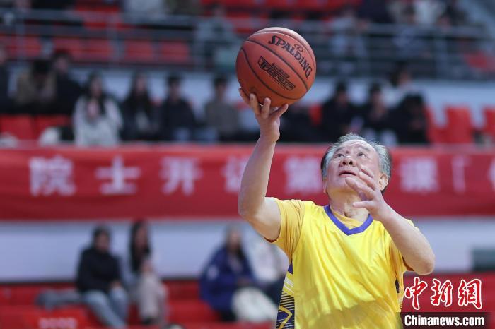 12月7日,南京农业大学举办“厚德才能载物 根深才能叶茂”院士第一课主题活动,67岁的中国工程院院士、南京农业大学教授沈其荣以球授课,和今年入学的学生们打篮球聊科研,激励学生们勇闯农业“赛道”。中新社记者 泱波 摄