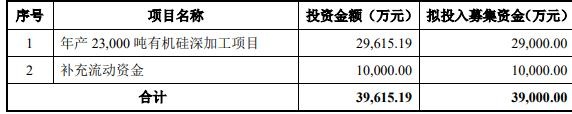 科峰股份原拟在深交所创业板发行股票数量不超过2,000.00万股(不考虑超额配售选择权),原拟募集资金39,000.00万元,计划用于年产23,000吨有机硅深加工项目、补充流动资金。