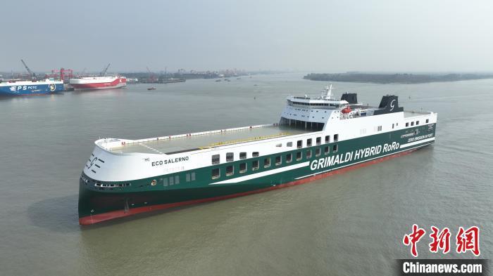 12月8日,全球领先混合滚装船“ECO SALERNO”轮在江苏扬州交付启航。 扬州海事局供图