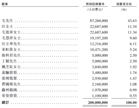 此外,毛戈平的两个姐姐毛霓萍及毛慧萍分别持有公司11.34%及9.60%的股权;汪立群的弟弟汪立华也持有公司6.11%股权。
