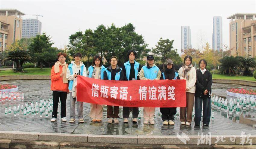 湖北日报讯(记者张歆、通讯员周文君)近日,武汉科技大学化学与化工学院青年志愿者服务队在该校杏坛广场上举办了“高校漂流瓶活动”,不同色彩的瓶子被摆成了和环保相关的趣味造型,吸引师生到场观看。