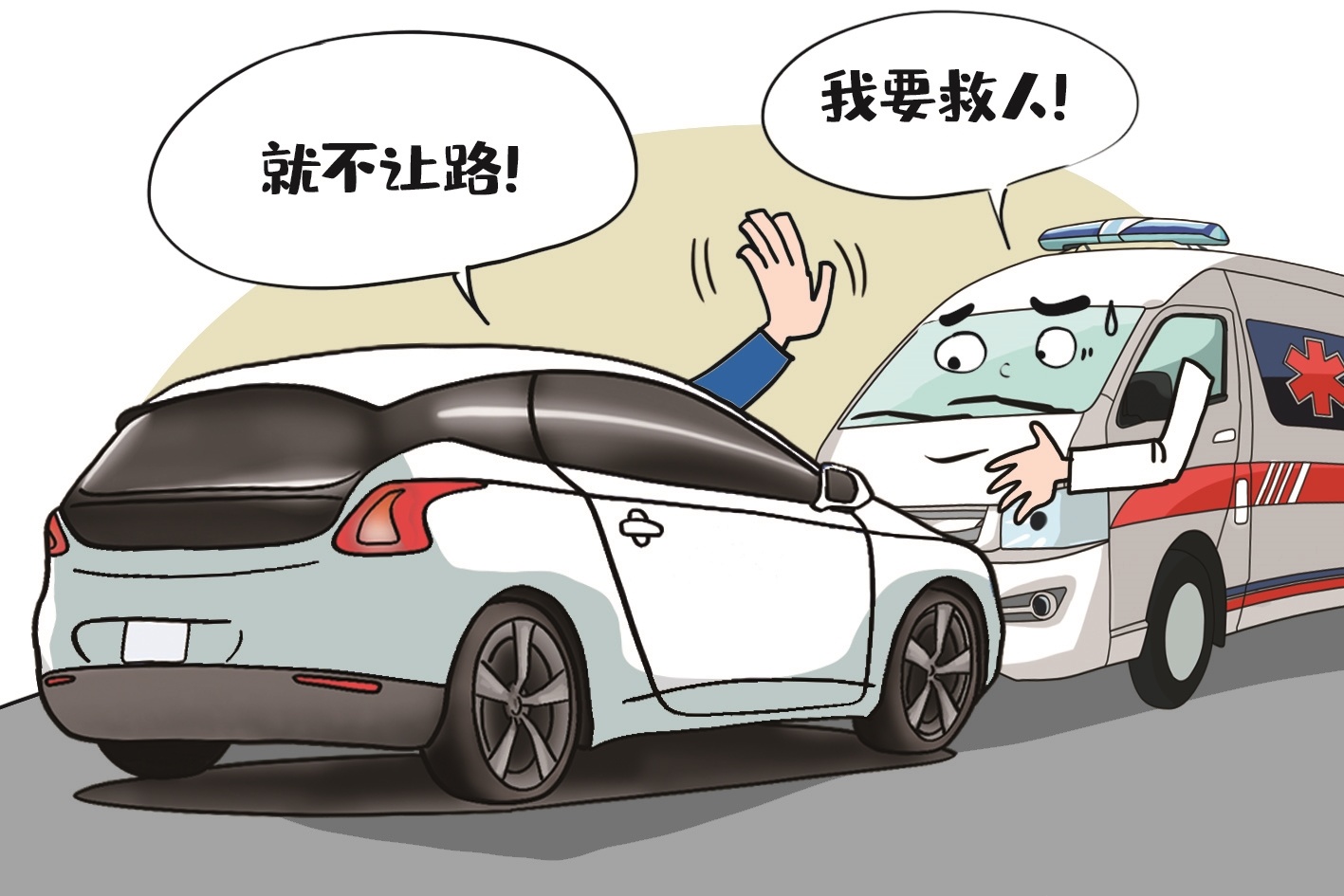 新京报:平时,司机为路权相争或许各有道理,但在救人的危急时刻,救护车的优先通行权不容商榷。这是法律责任,也是公民义务。希望这种与救护车抢行的事别再发生了。