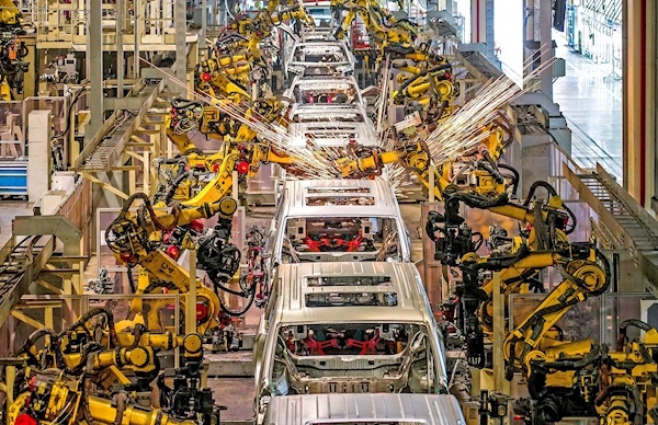 机器人正在焊接岚图新能源汽车 摄影:楚天都市报极目新闻记者肖颢