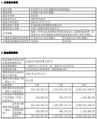 中国经济网北京12月11日讯 今日,汇添富基金管理股份有限公司发布汇添富中证A500指数型证券投资基金基金合同生效公告。