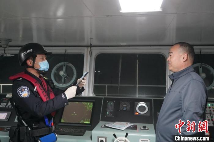 宁德边检站移民管理警察对船员进行人证对照。 杨隆宇 摄