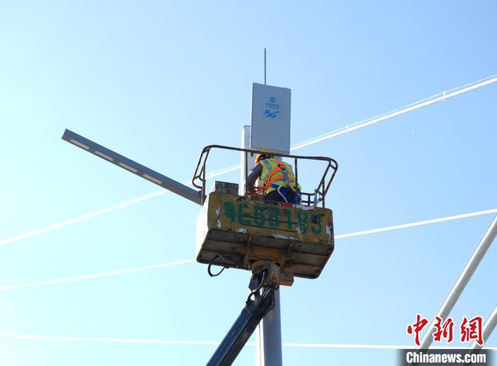 图为广东移动工作人员在黄茅海跨海通道作业。受访者供图