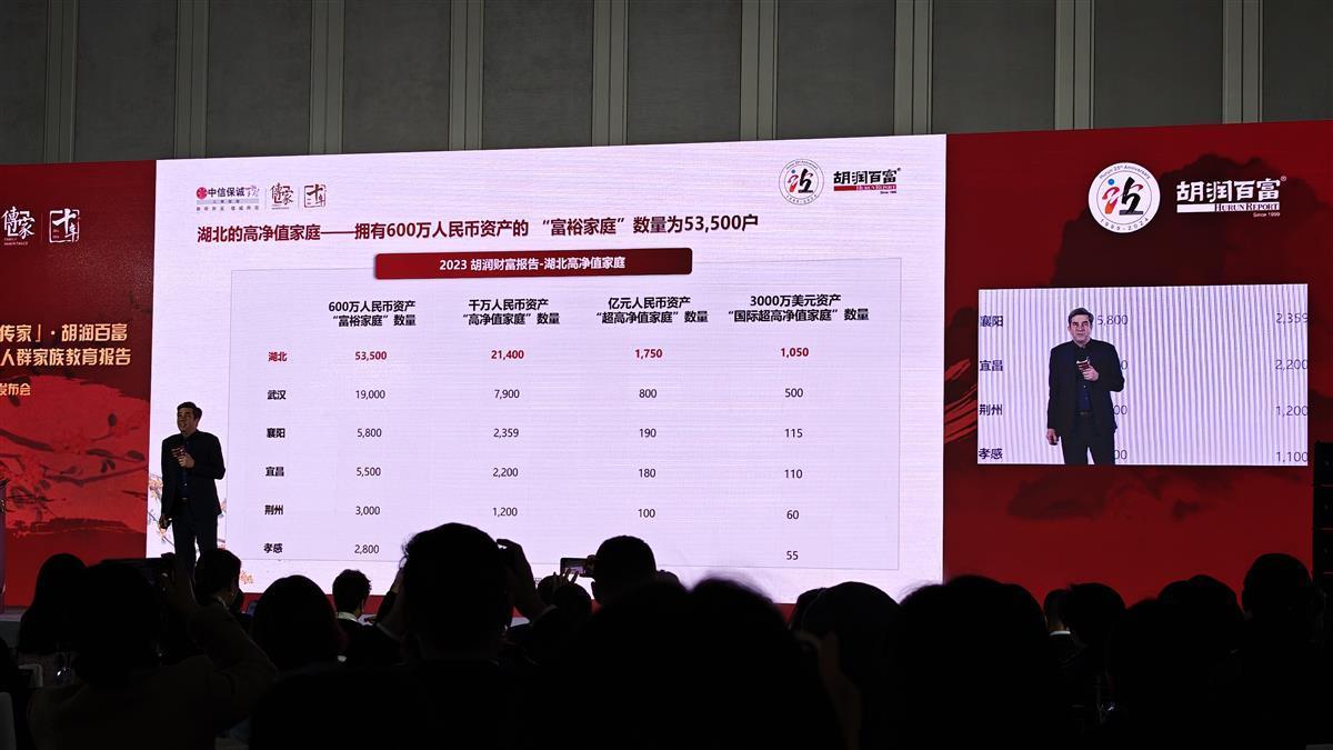 胡润百富董事长、首席调研官胡润在发布会上介绍,湖北省拥有千万人民币资产“高净值家庭”数量为2.14万户,比上年增长0.9%,位列全国第15名。此外,拥有600万人民币资产的“富裕家庭”数量达5.35万户,亿元人民币资产“超高净值家庭”数量为1750户。
