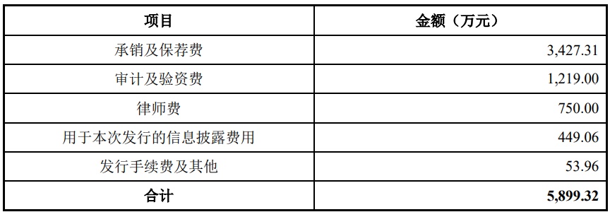 先锋精科本次发行费用合计5,899.32万元(不含增值税),其中承销及保荐费3,427.31万元。