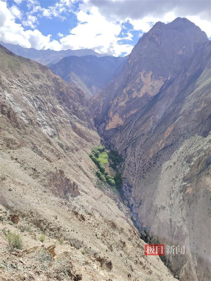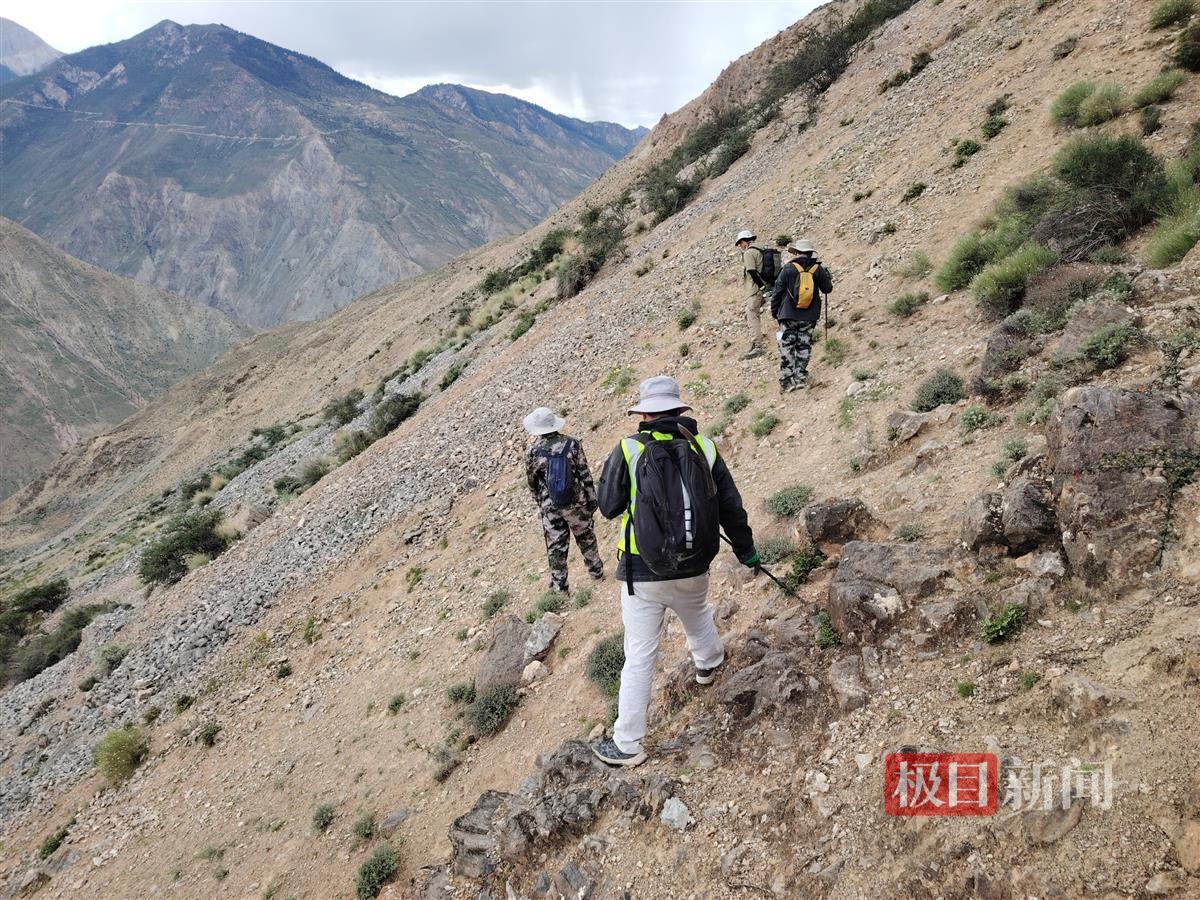 沿线存在多处V型深沟,常见滑坡、泥石流等地质灾害的痕迹,山体极不稳定。在翻越沿线一处只有一户人家的三削村时,近乎垂直的峭壁横亘在大家面前。苏怀平身背安全绳,吃力地向前攀爬。他每走一段,就固定好安全绳,为后续人员提供一条安全通道。靠着手拉手前进,大家安全通过三削绝壁。