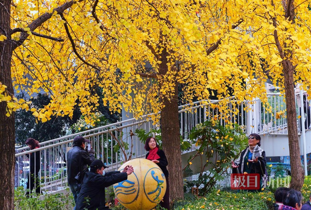 12月12日,武汉市江岸区江大路天桥旁的银杏树披上了金黄色的外衣。记者在现场看到,天桥上下扶栏处,几棵茂盛的银杏树垂下层层叠叠的枝叶,满树金黄如瀑布,微风吹过,银杏叶便如同蝴蝶翩翩起舞,不少市民游客来此打卡拍照。