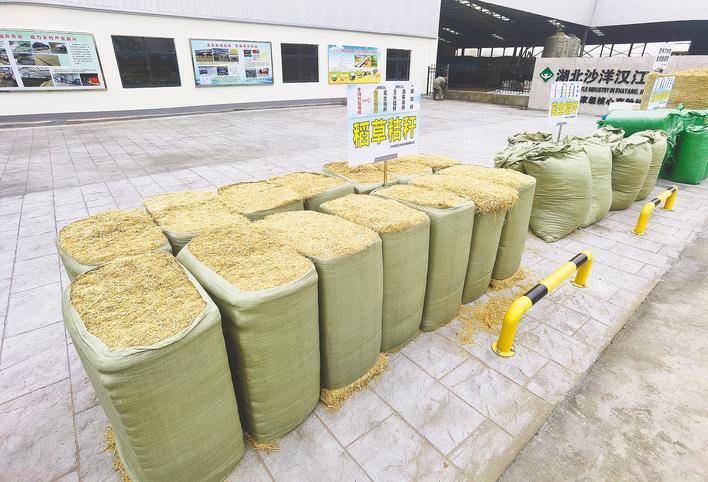 12月1日,沙洋汉江牛业发展有限公司厂房外的秸秆,准备用作牛饲料。 (湖北日报通讯员 田杭宇 摄)