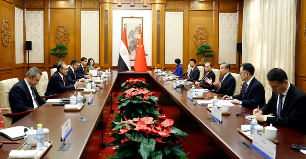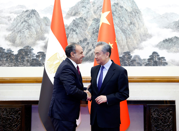 王毅表示,在习近平主席和塞西总统战略引领下,中埃传统友谊进一步弘扬,互利合作不断深入。今年5月,两国元首共同见证签署共建“一带一路”合作规划,为推动中埃全面战略伙伴关系迈向下一个“黄金十年”注入新的动能。中方赞赏埃方坚定奉行一个中国原则,支持埃方维护国家主权、安全和发展利益,反对任何势力以任何借口干涉埃及内政,愿同埃方一道,落实好两国元首重要共识,推动双边关系朝着构建面向新时代的中埃命运共同体的更高目标不断迈进。