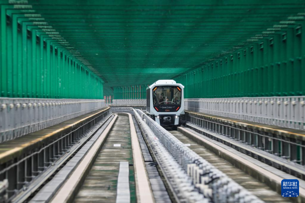 这是11月21日在澳门拍摄的行驶中的轻轨列车。新华社记者 王益亮 摄