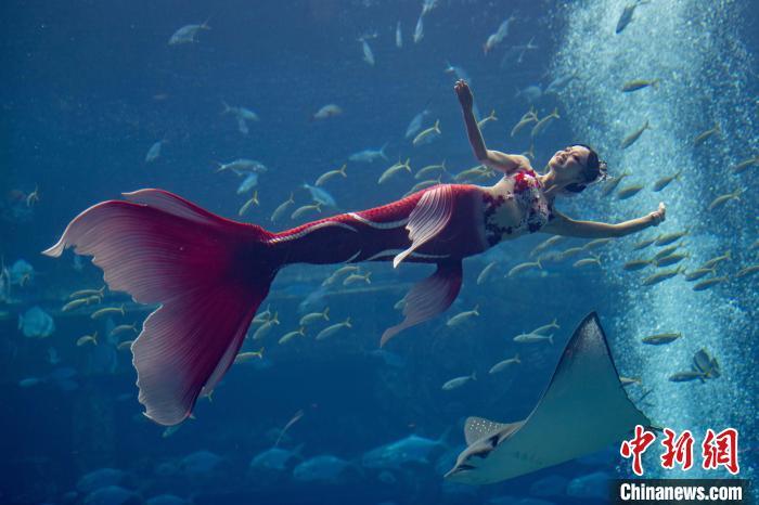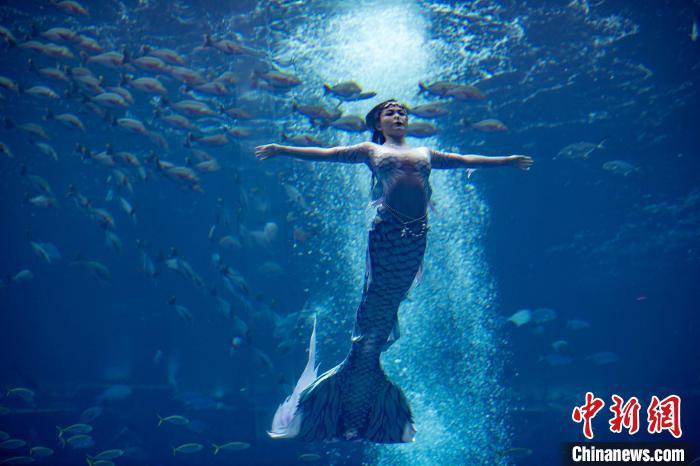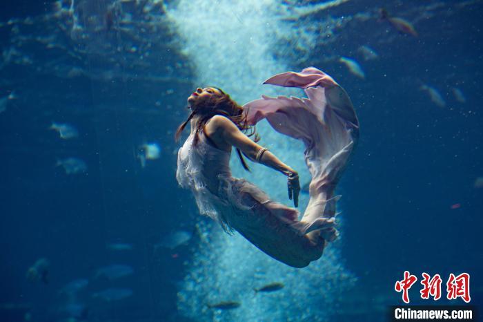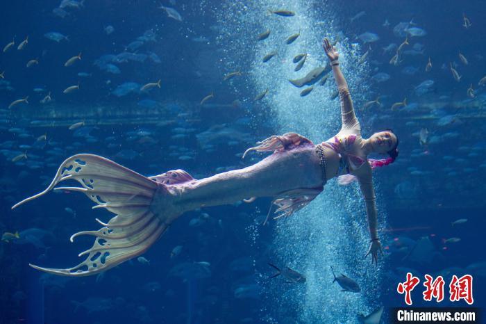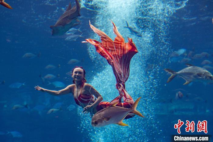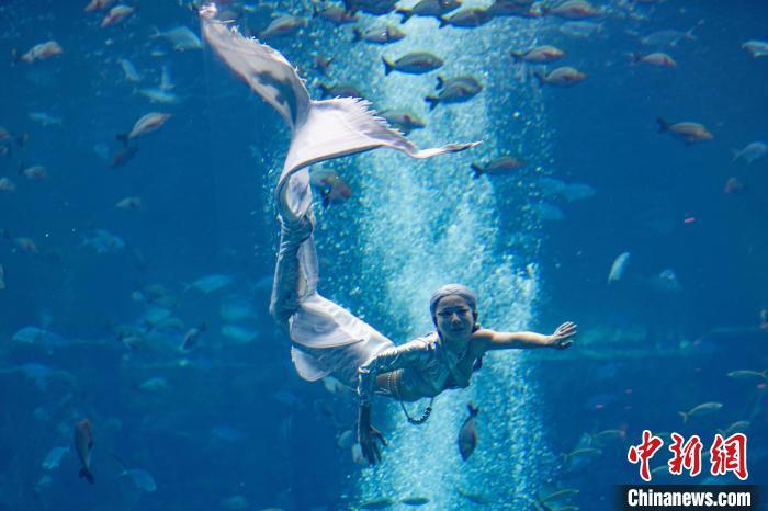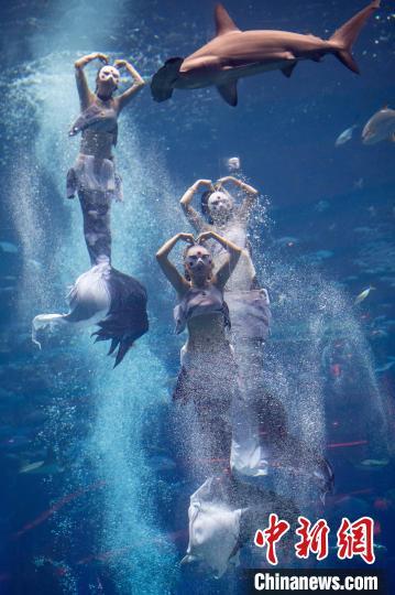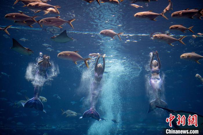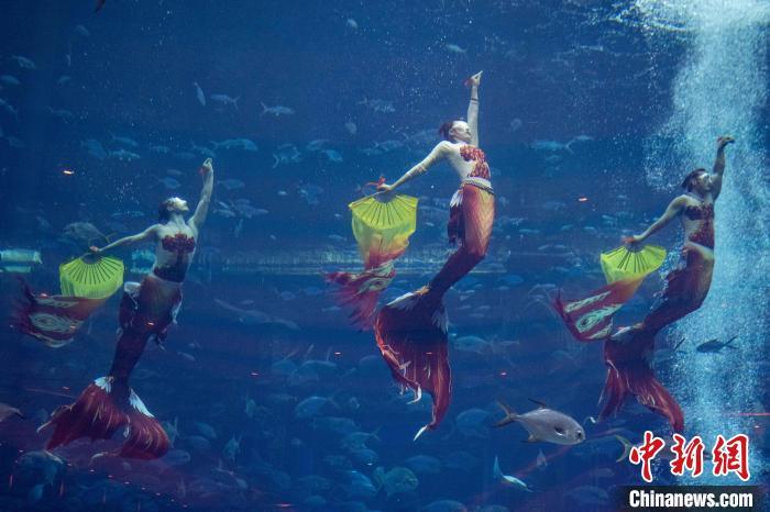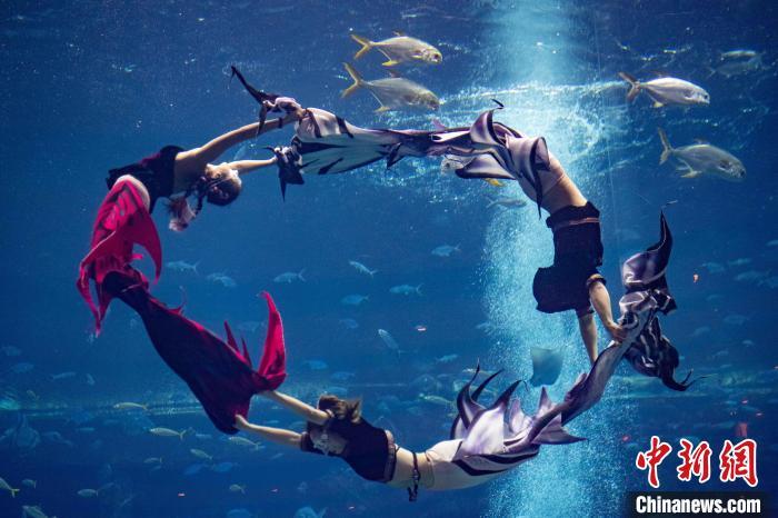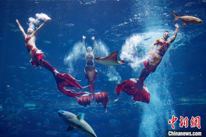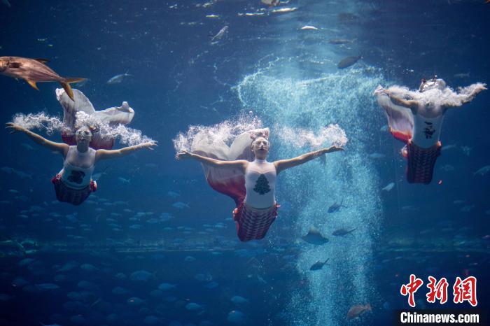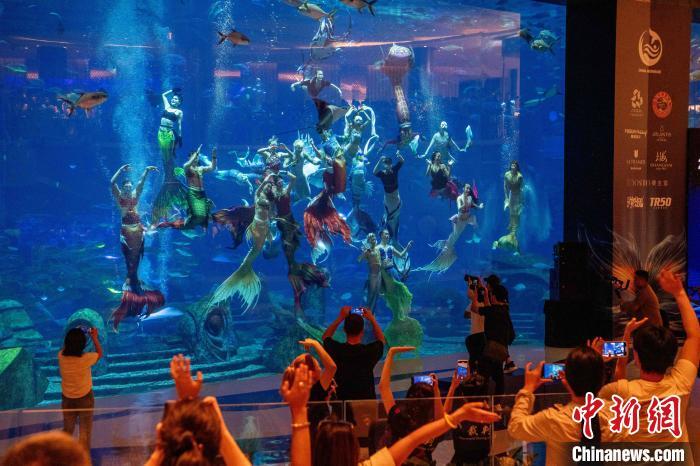 12月13日,2024中国美人鱼公开赛年度总冠军赛暨亚洲杯赛在海南三亚·亚特兰蒂斯收官。本次赛事吸引来自中国、韩国、新加坡、马来西亚、泰国等国家和地区的70多位运动员参与。经过两天激烈角逐,最终中国队包揽亚洲杯赛男子单人、女子单人和团体赛冠军。图为中国队在亚洲杯赛团体组自由技巧的比赛中,最终获得该项目冠军。中新社记者 骆云飞 摄