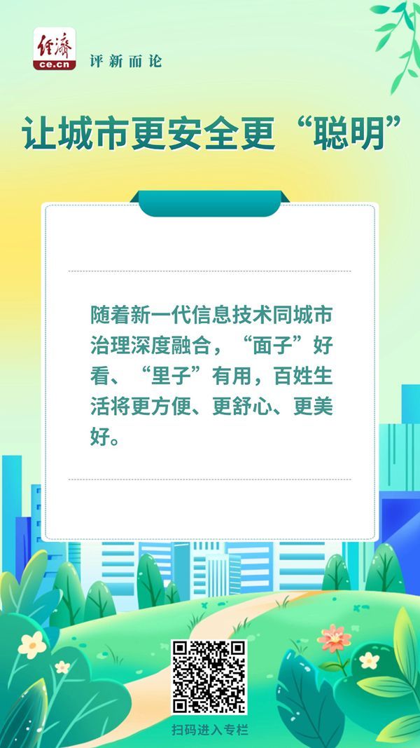 安全是发展的前提,发展是安全的保障。打造韧性城市,正是推进以人为核心的新型城镇化的必然要求。随着新一代信息技术同城市治理深度融合,“面子”好看、“里子”有用,百姓生活将更方便、更舒心、更美好。(中国经济网评论员 子房先生)