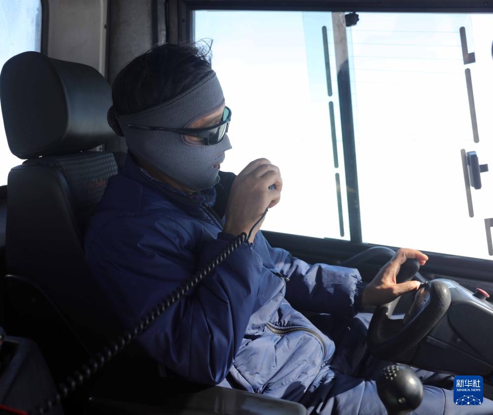 雪地车驾驶员开车运送货物(12月3日摄)。