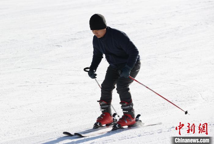 12月14日,游客在宁夏固原市泾源县娅豪国际滑雪场滑雪。中新社记者 于晶 摄