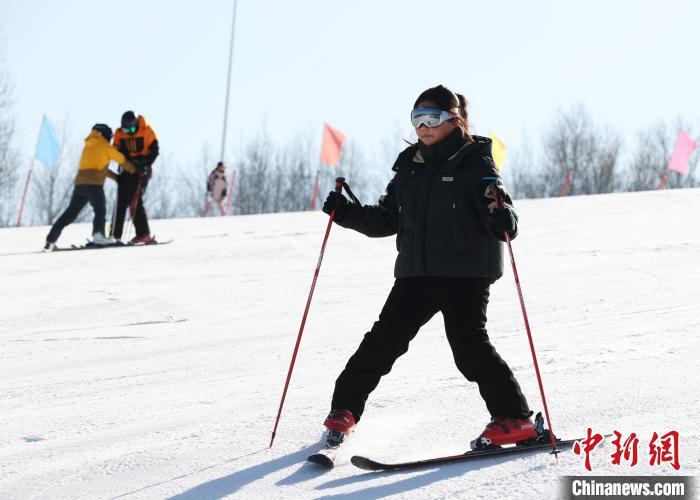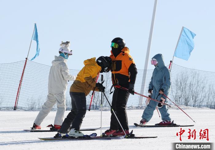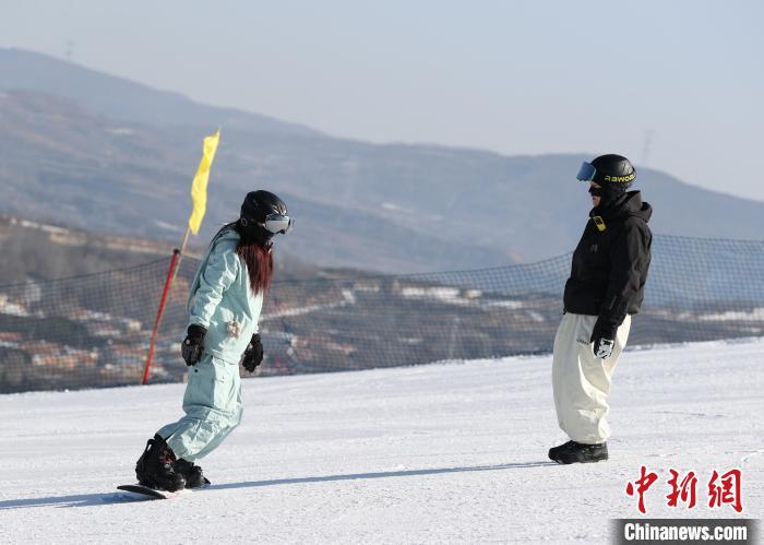 12月14日,游客在宁夏固原市泾源县娅豪国际滑雪场学习滑雪。中新社记者 于晶 摄