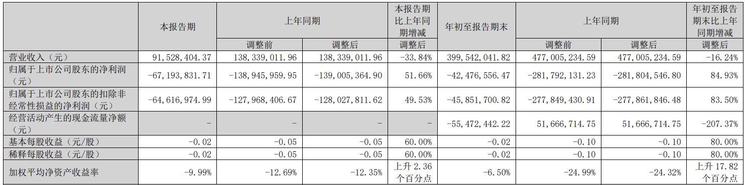 2024年前三季度,华谊兄弟的营业收入为4.00亿元,较上年同期的4.77亿元降16.24%;归属于上市公司股东的净利润-4247.66万元,上年同期-2.82亿元;归属于上市公司股东的扣非净利润为-45850.17万元,上年同期为-2.78亿元;经营活动产生的现金流量净额为-5547.24万元,上年同期为5166.67万元。