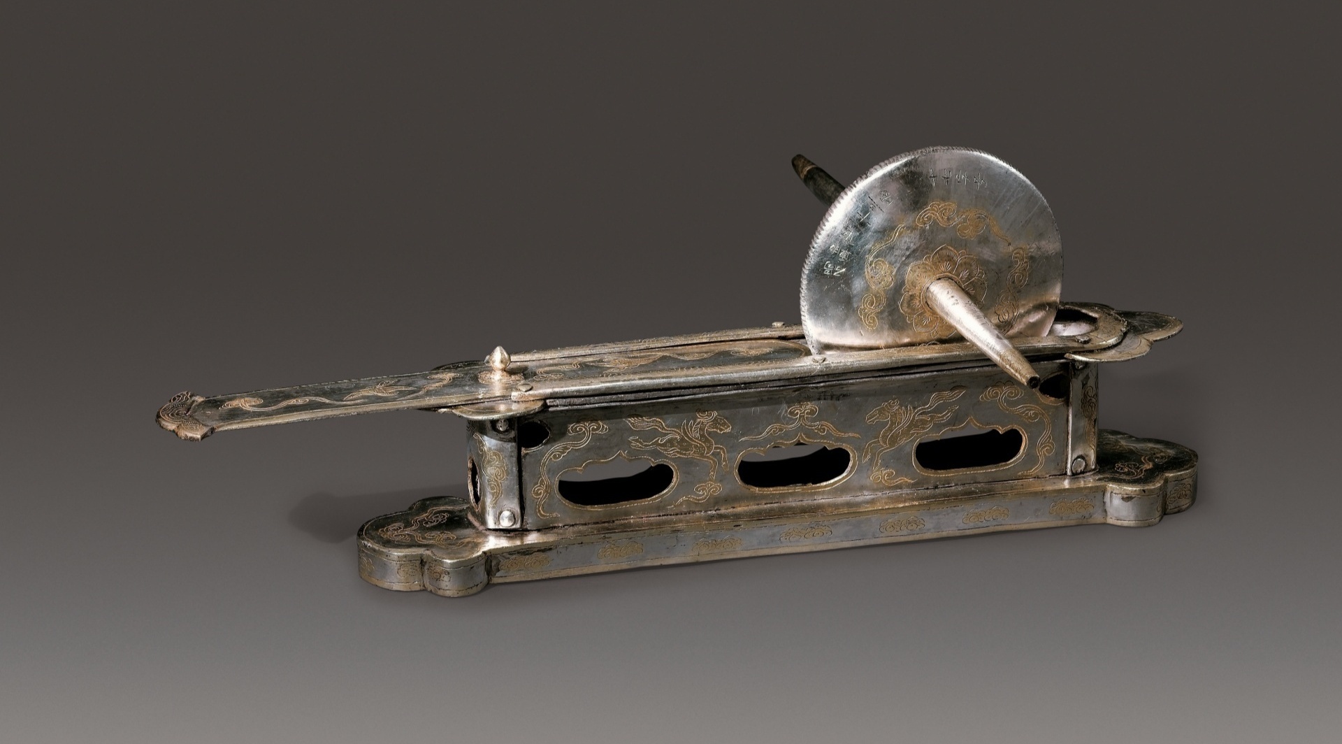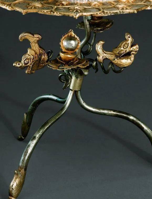 鎏金摩羯鱼三足架银盐台