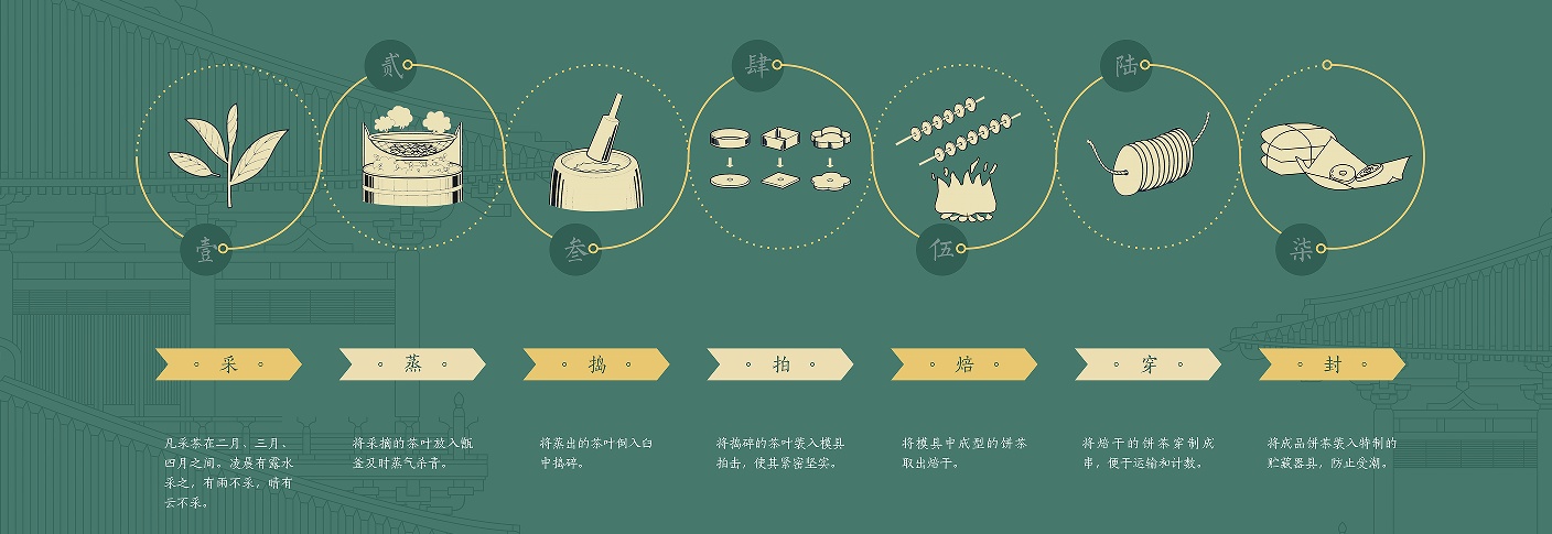 经过“蒸之、捣之、拍之、焙之、穿之、封之”几道工序