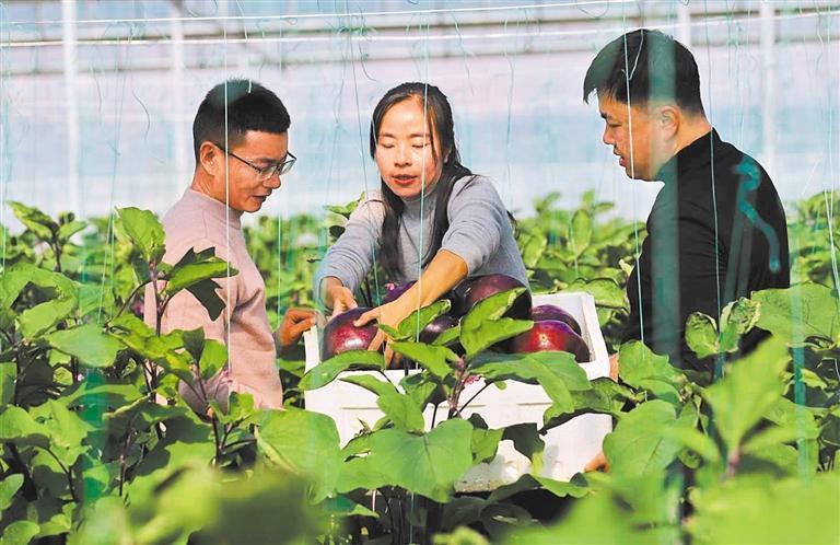 12月16日,在江西萍乡湘东区腊市镇竺园村农业蔬菜基地,农民在大棚采收茄子。彭 亮摄(中经视觉)