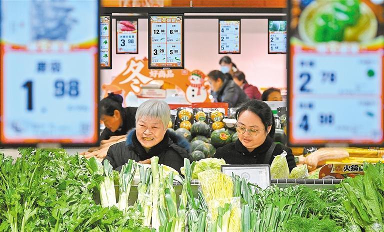12月9日,消费者在河北邯郸峰峰矿区一家超市选购蔬菜。郝群英摄(中经视觉)