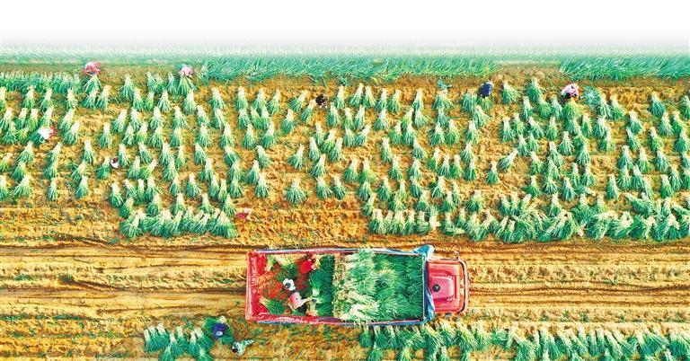 12月8日,河南周口齐老乡袁楼村一大葱种植基地,农民正在劳作。杨正华摄(中经视觉)