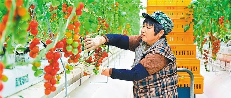 12月13日,四川南充江陵镇中法农业科技园智能温室大棚,农民在采摘番茄。杨 波摄(中经视觉)