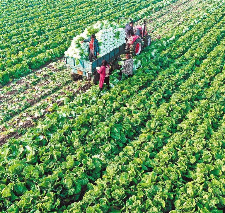 12月6日,安徽蒙城李大塘村,农民将大白菜装车,准备销售。胡卫国摄(中经视觉)