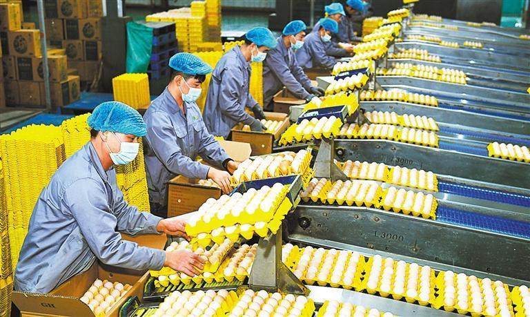 12月13日,山西晋龙养殖股份有限公司吴嘱鸡场,工人在鸡蛋分拣线上工作。栗卢建摄(中经视觉)