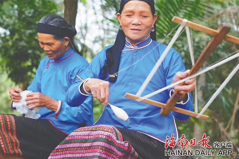 海南黎族妇女纺线。海南日报全媒体记者 张杰 摄