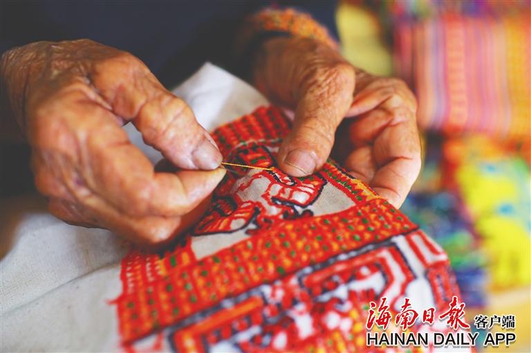 海南黎族妇女刺绣。海南日报全媒体记者 张茂 摄