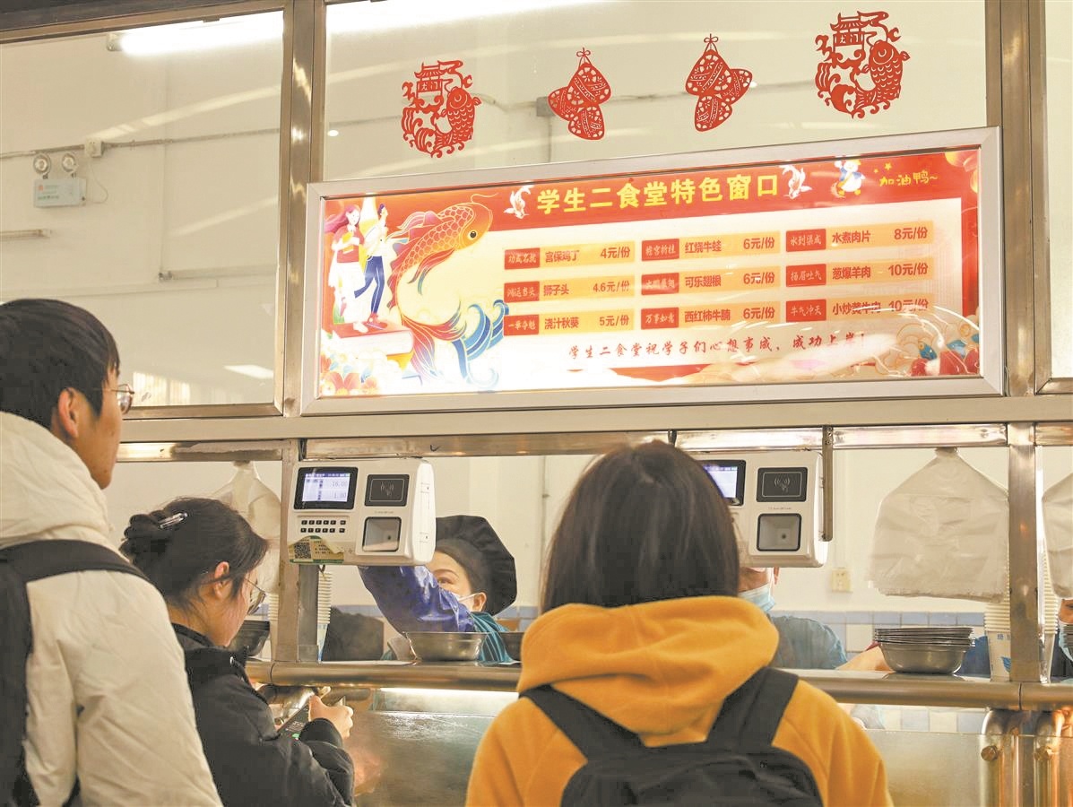 中午11时30分,食堂客流增多,该校生命科学学院的李同学走出考研自习室便直奔学生四食堂。他很快发现熟悉的窗口有了新变化,“希望一举夺魁的好兆头能在我身上应验!”