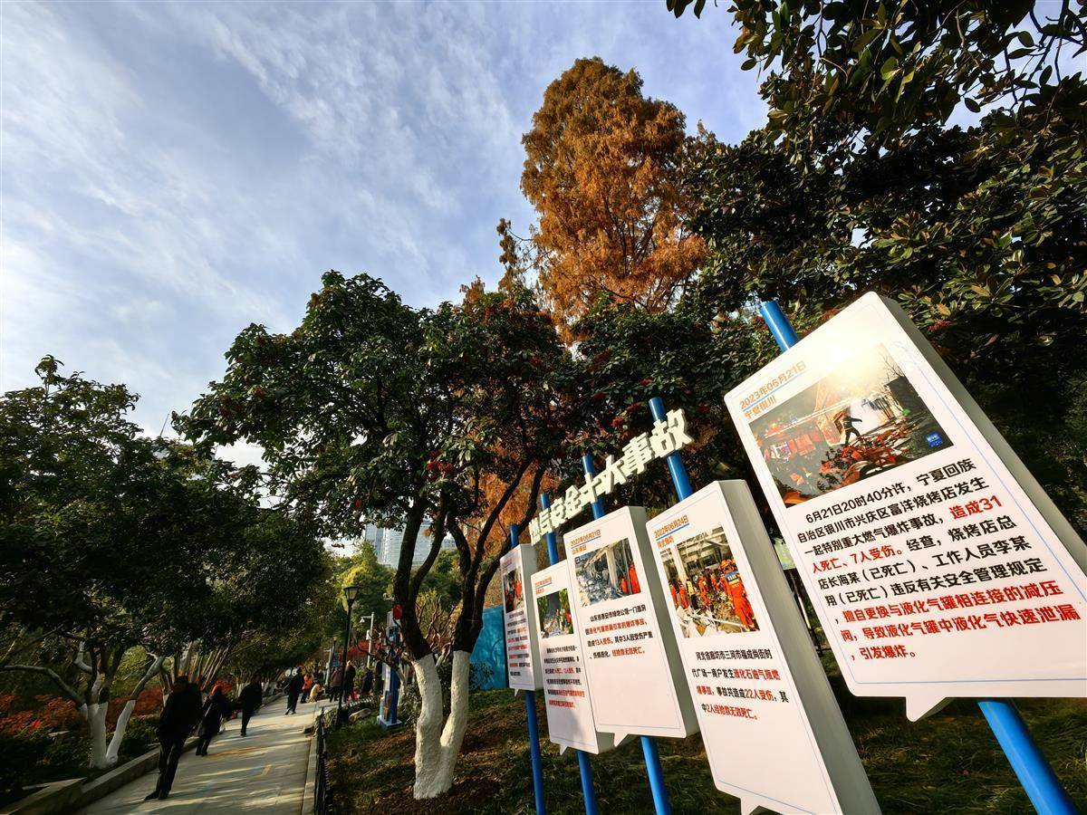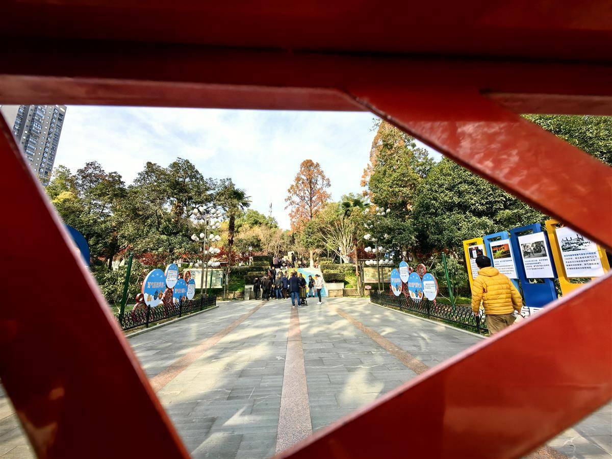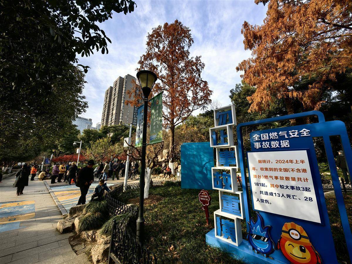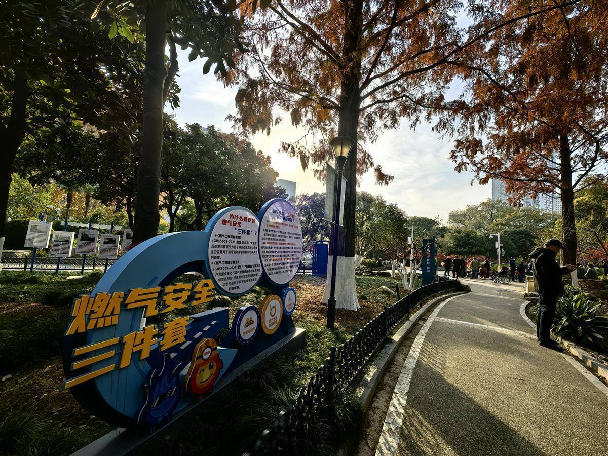 12月17日,市民从武汉市洪山公园燃气安全主题入口经过。武昌区城管执法局结合洪山公园原有文化娱乐区域,将公园升级改造为燃气安全主题公园,分为“武汉燃气发展历史”、“燃气安全事故警示”、“燃气安全知识科普”、“燃气旧改知识宣传”四大主题,丰富了公园功能性,也成为市民学习燃气安全知识的第二课堂。