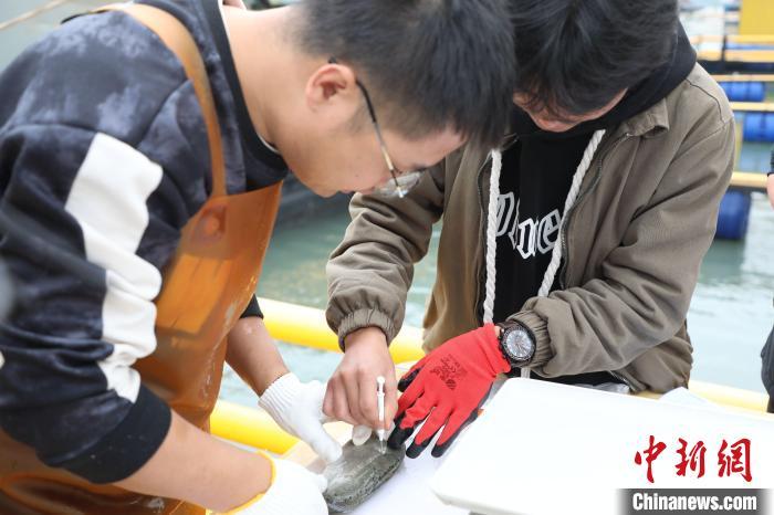 技术人员向鲈鱼注射芯片。 夏岩缘 供图