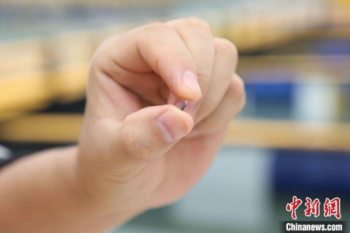“这个小小的圆柱体就是花鲈的选育芯片。”福建农林大学海洋学院副教授邵光明指着长仅0.7厘米的芯片介绍,每个芯片都有一个编码,相当于花鲈的专属“身份证”,它也将成为技术人员选拔、定位花鲈基因“优等生”的有效凭证。