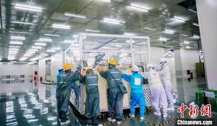 12月19日,中国大陆首条TFT基Micro-LED量产线在四川成都正式启动量产。图为今年9月辰显光电工作人员将量产设备搬入车间。 (辰显光电 供图)