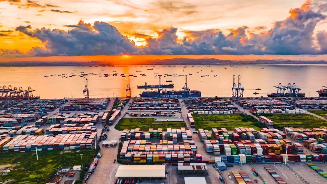 集装箱装载着全球物产