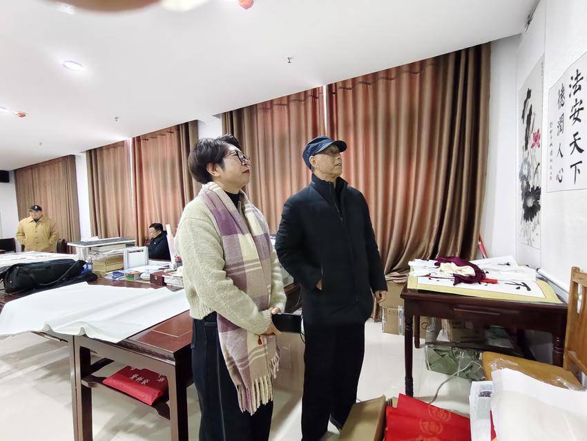襄阳市老年书画协会的专家们认真品鉴了谷城县老年书友的书画作品,并给出专业且细致的指导点评。