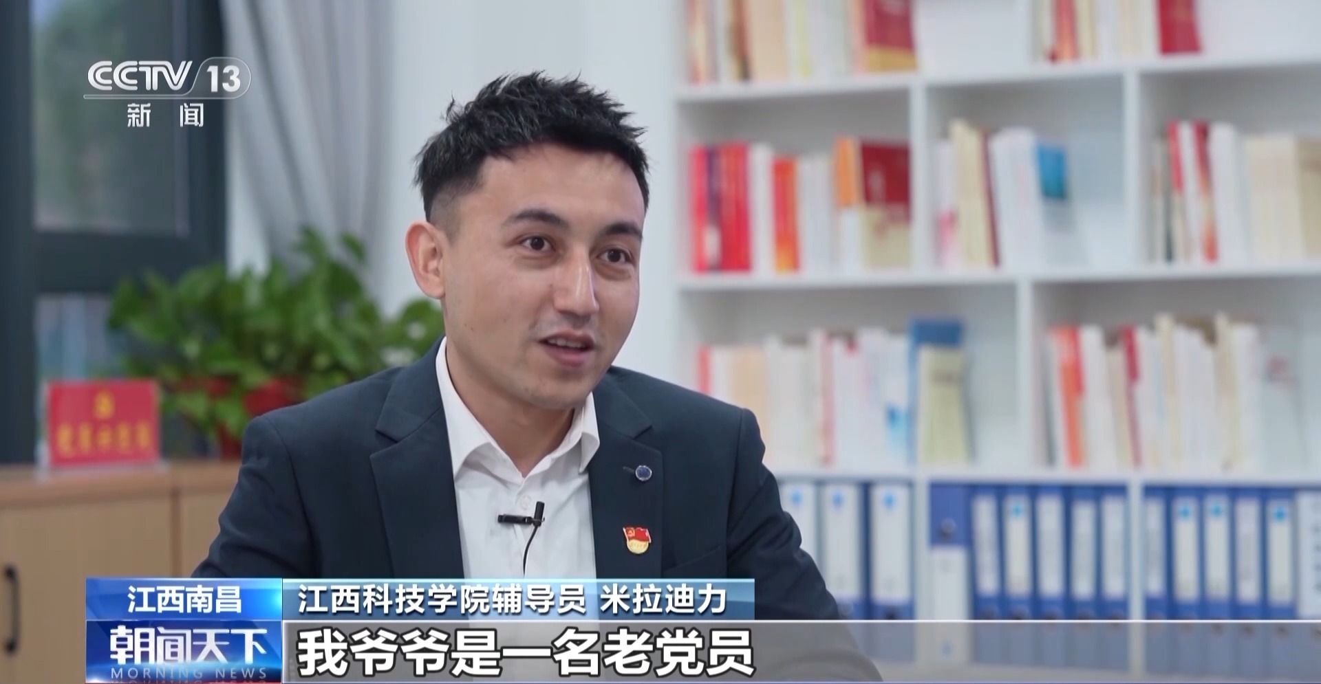 江西科技学院辅导员 米拉迪力:翻开我的朋友圈,每年7月1日都会发这个入党视频,我会想到我爷爷跟我说的那一句话,懂得感恩,爱国爱党。我要把一个党员的精神传承下去,我就更加坚定地去做好我自己的工作。