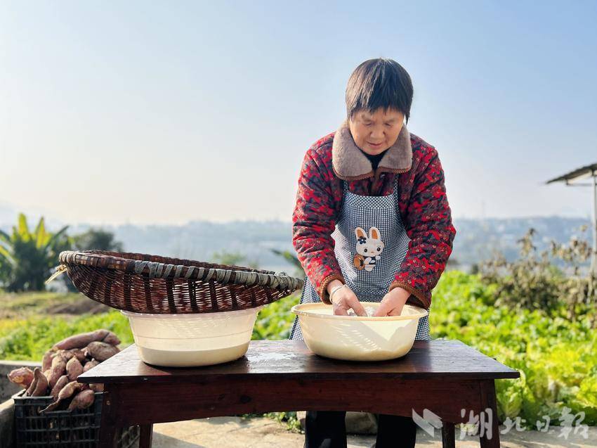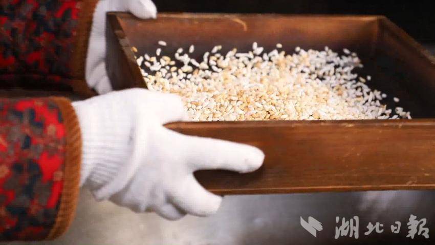 一大早,在恩施州建始县长梁镇白云村,村民左垂英正忙着准备制作米子糖的材料,米子糖的主要成分为糯米和麦芽糖,她将糯米倒入清水中进行浸泡清洗,再将洗好的糯米装入筲箕备用。