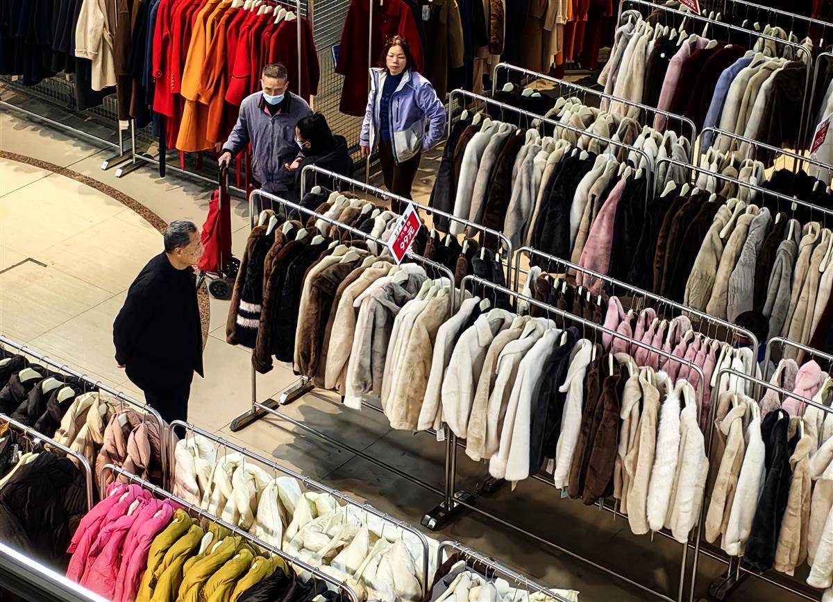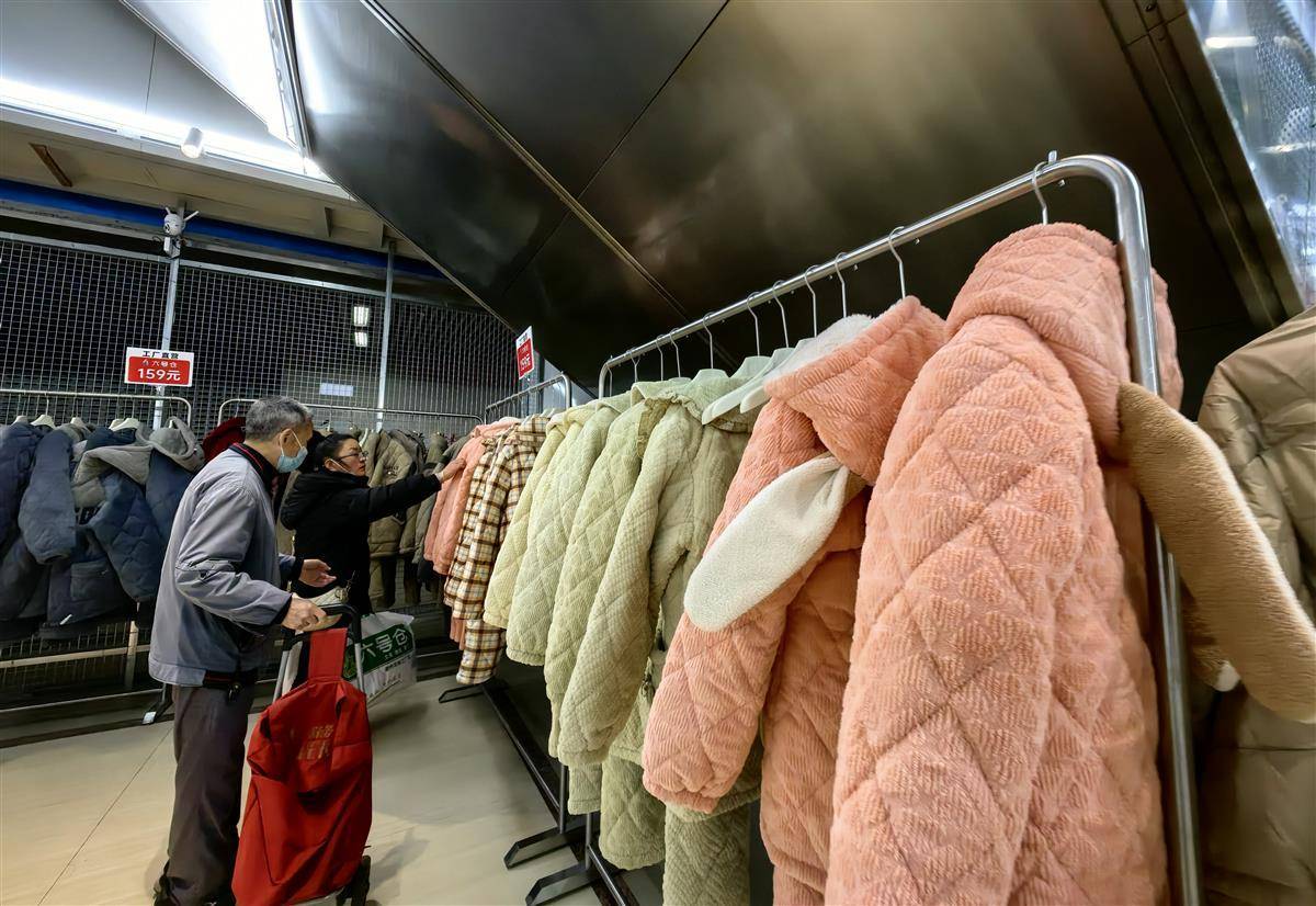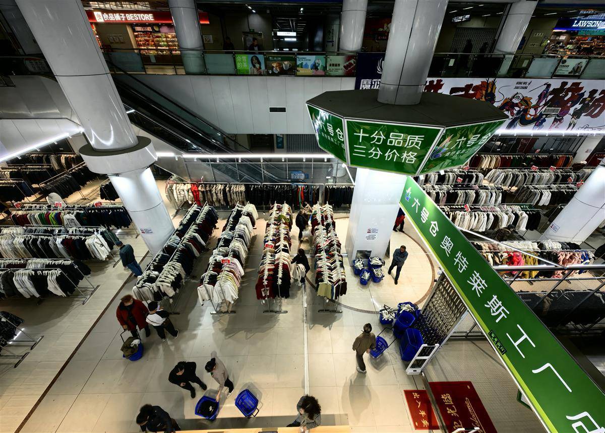 12月20日,搭乘武汉地铁4号、12号线的乘客在洪山广场站内逛“奥莱”。武汉地铁近日首次引入奥特莱斯工厂店,在洪山广场站厅通往D出口商业区开设约1100平方米的“六号仓”工厂店,专售各类品牌服装,顾客自助式选购试穿。
