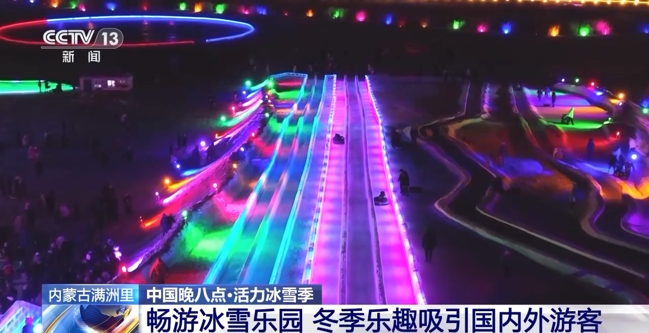 接下来我们要去的是内蒙古满洲里市,这个边境小城素有“东亚之窗”的美誉,冬季夜晚,当地室外温度已经是零下二十多摄氏度,但在满洲里的冰雪童谣主题乐园,却依然灯光璀璨、人头攒动,人们在大型冰雪雕塑和游艺设施间尽情享受冰雪乐趣。马上跟随记者的镜头到现场去看一看。