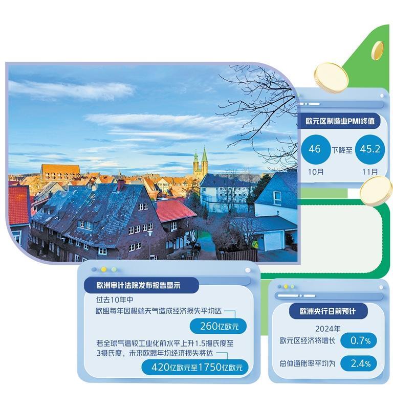 首先,自然灾害已成为制约欧洲经济的一个重要因素。欧洲审计法院近日发布报告显示,在过去10年中,欧盟每年因极端天气造成的经济损失平均高达260亿欧元。该机构警告称,若全球气温较工业化前水平上升1.5摄氏度至3摄氏度,欧盟未来的年均经济损失可能将达到420亿欧元至1750亿欧元。