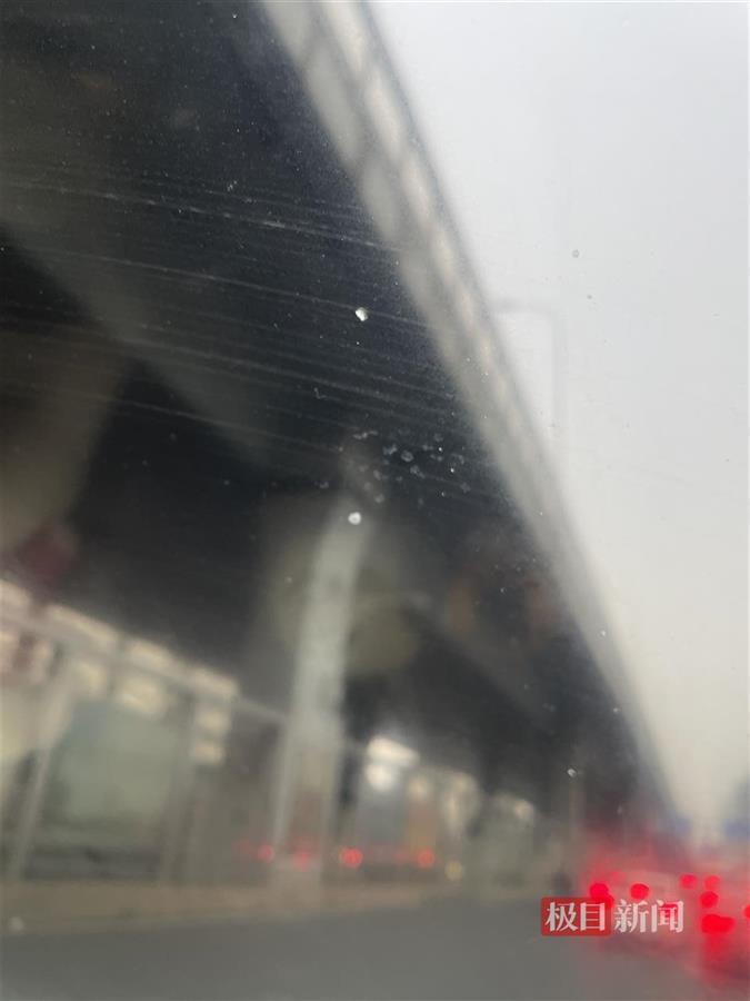 市民徐先生开车开到了马房山这个地方,发现现在车窗上飘的都是雪子,但是手机很难拍到。